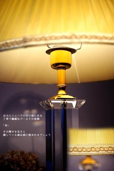優しげな印象のシェードのプリーツと、水晶の美しいベースは、気品と知性を感じさせる組み合わせです。