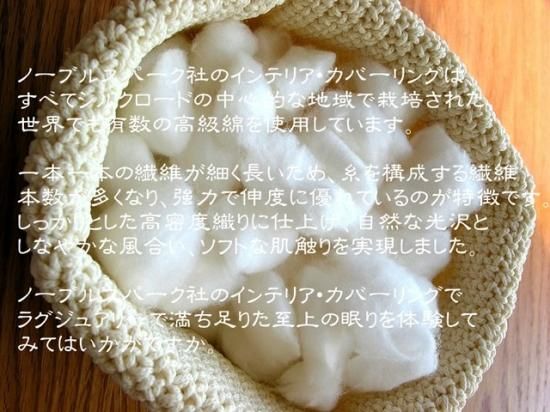 ノーブルスパーク社のインテリア・カバーリングはすべてシルクロードの中心的な地域で栽培された世界でも有数の高級綿を使用しています。